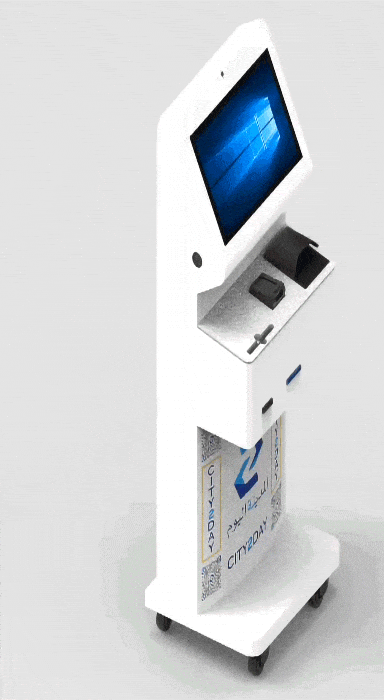 واجهة مستخدم بسيطة وسهله تمكن العميل من استخدام الجهاز بشكل بسيط مع مرشد صوتي لتسهيل الاستخدام توفير الوقت والجهد وحل مشكلة التزاحم والانتظار على كاونتر الاستقبال .